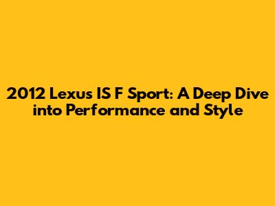 Hey guys! Let's talk about a sweet ride: the 2012 Lexus IS F Sport. This car isn't just a car; it's a statement. It's about blending high-performance thrills with the luxury and comfort that Lexus is known for. The 2012 model year brought some exciting features and upgrades, making it a standout in the sports sedan segment. If you're into cars that look as good as they drive, then you're in the right place. We'll be going over everything from the engine specs to the interior comforts and what makes the IS F Sport a popular choice among car enthusiasts. Ready to dive in? Let's go!