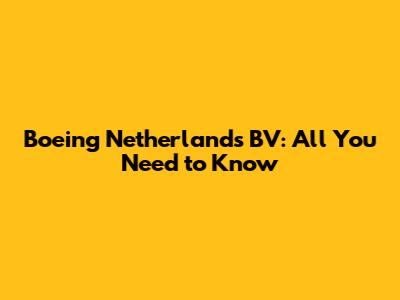Boeing Netherlands BV: All You Need To Know