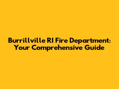Burrillville RI Fire Department: Your Guide