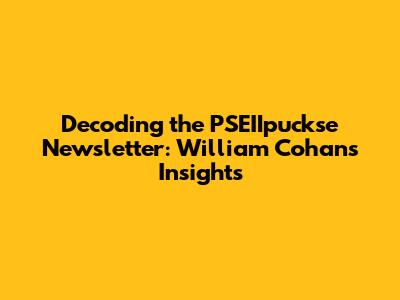 Decoding The PSEIIpuckse Newsletter: William Cohan's Insights