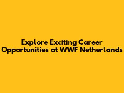 Explore Exciting Career Opportunities At WWF Netherlands