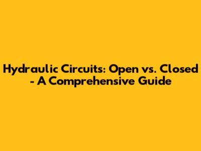 Hydraulic Circuits: Open Vs. Closed - A Comprehensive Guide