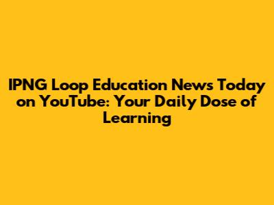 IPNG Loop Education News Today On YouTube
