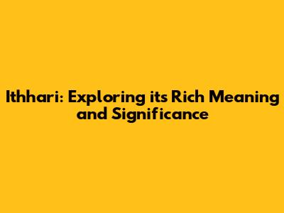 Ithhari: Exploring Its Rich Meaning And Significance