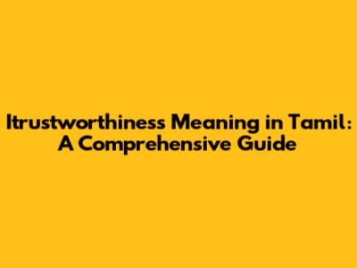 Itrustworthiness Meaning In Tamil: A Comprehensive Guide
