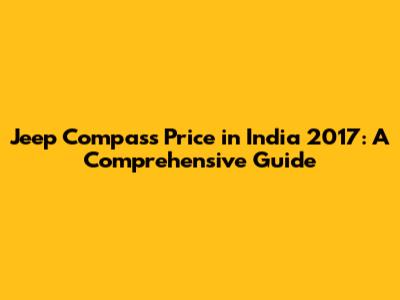 Jeep Compass Price In India 2017: A Comprehensive Guide
