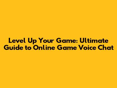 Level Up Your Game: Ultimate Guide To Online Game Voice Chat
