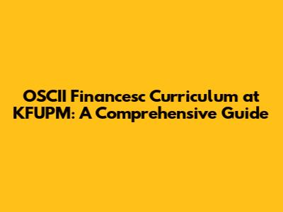 OSCII Financesc Curriculum At KFUPM: A Comprehensive Guide