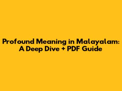 Profound Meaning In Malayalam: A Deep Dive + PDF Guide