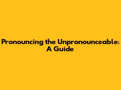 Pronouncing The Unpronounceable: A Guide