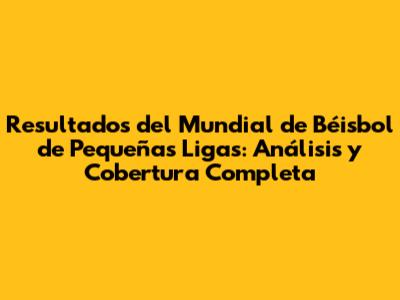 ¡Hola fanáticos del béisbol! Prepárense porque nos sumergiremos de lleno en el emocionante mundo del Mundial de Béisbol de Pequeñas Ligas, desglosando resultados, analizando actuaciones clave y brindando una cobertura completa de este evento deportivo de renombre mundial. Este torneo, que se celebra anualmente, es mucho más que un simple juego; es una vitrina del talento juvenil, la pasión por el deporte y el espíritu de competencia. Desde el lanzamiento de la primera bola hasta el último out, cada juego es una historia de perseverancia, habilidad y trabajo en equipo. Este artículo te llevará a través de los momentos más destacados, los equipos que brillaron y los héroes que emergieron en el campo. Vamos a examinar los resultados detallados, las estrategias empleadas y el impacto cultural de este evento. Prepárense para una inmersión profunda en el universo del béisbol juvenil, donde los sueños se hacen realidad y las futuras estrellas forjan su camino.