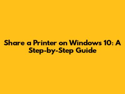 Share A Printer On Windows 10: A Step-by-Step Guide