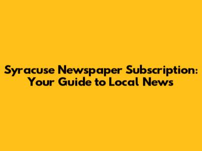 Syracuse Newspaper Subscription: Your Guide To Local News