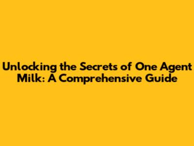 Unlocking The Secrets Of One Agent Milk: A Comprehensive Guide